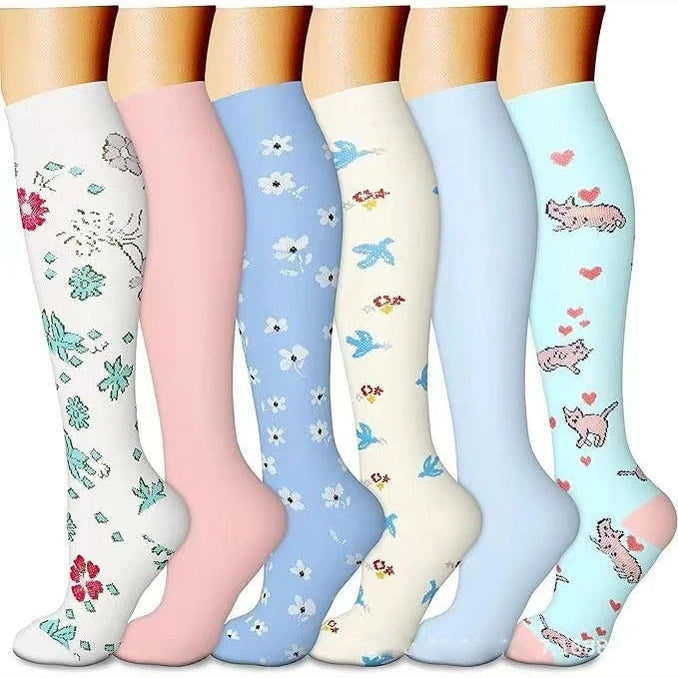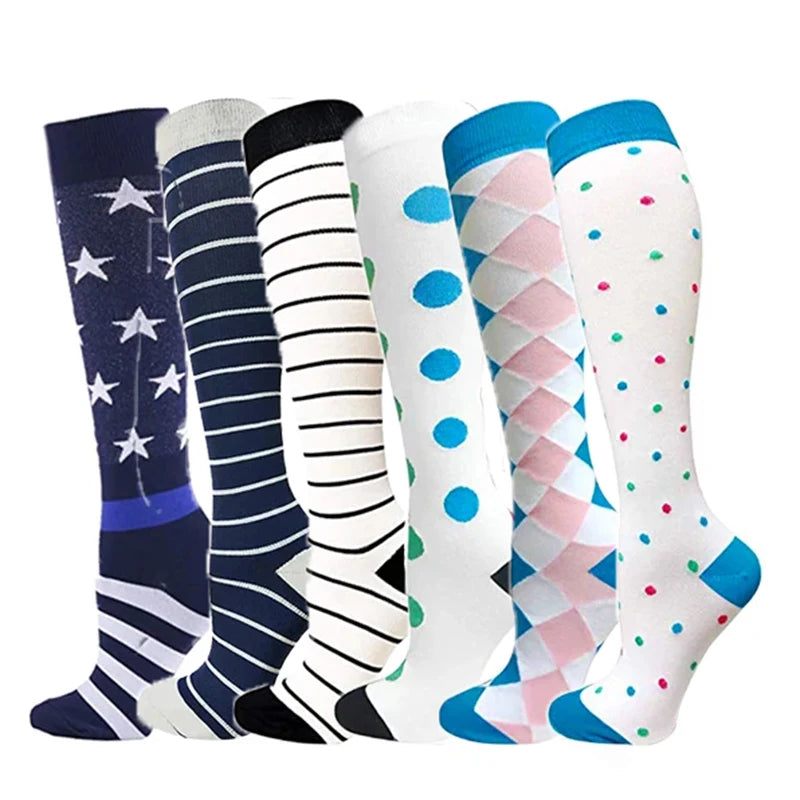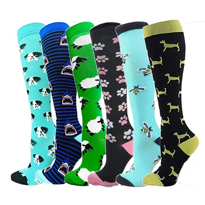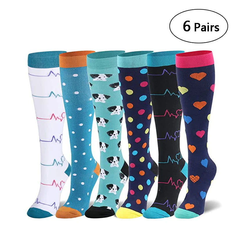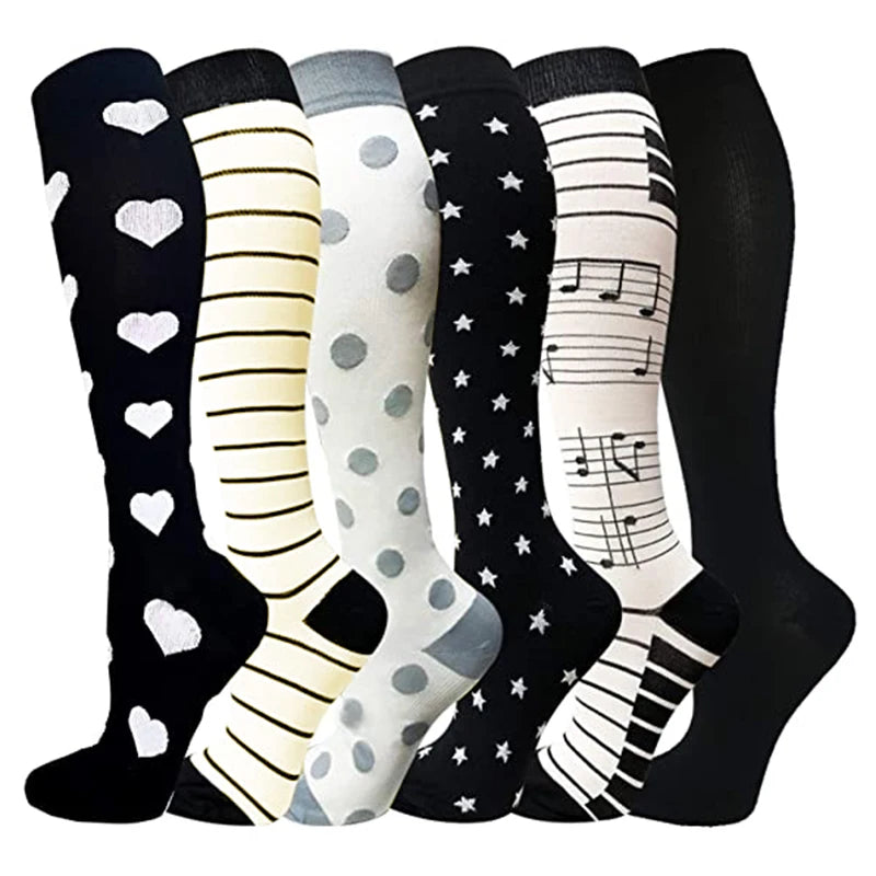 HUAYASX 6 PAIRS Compression Socks Stripes, Dots, Colorful, calf compress Socks