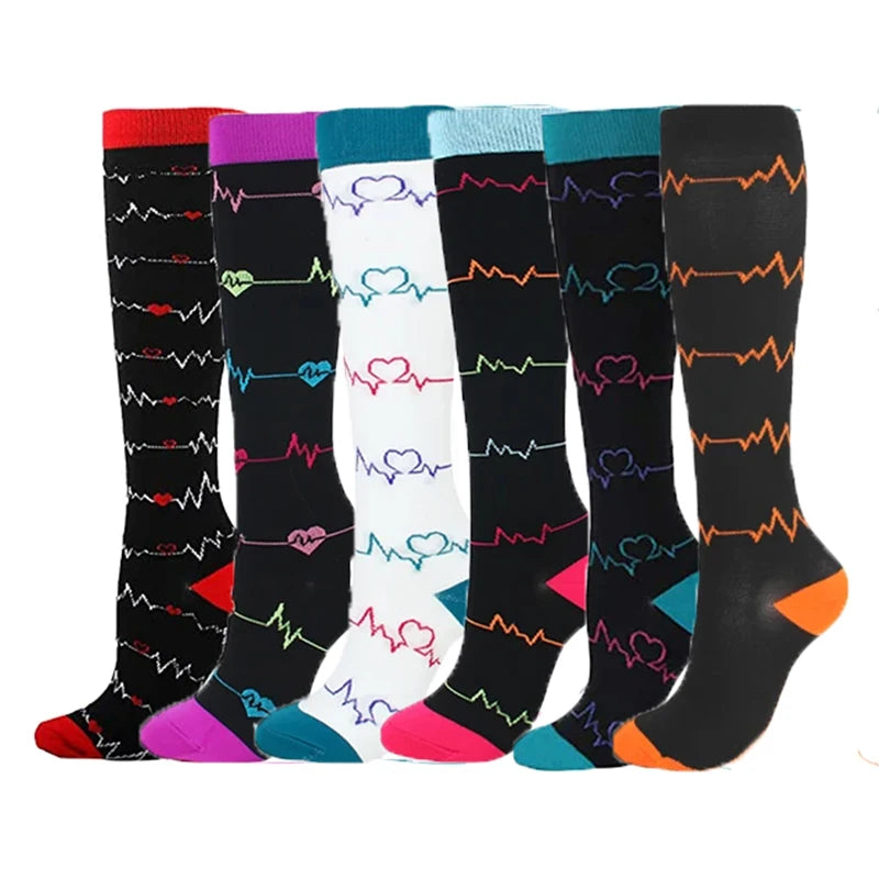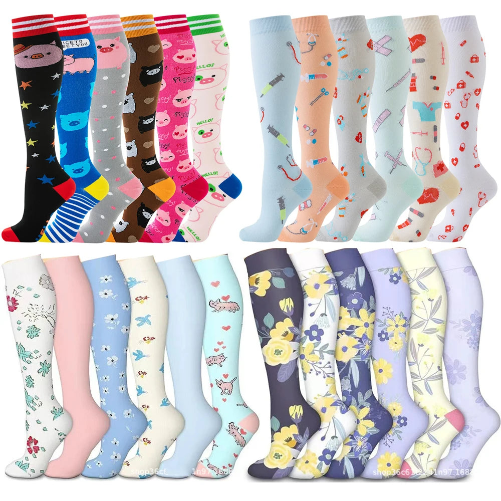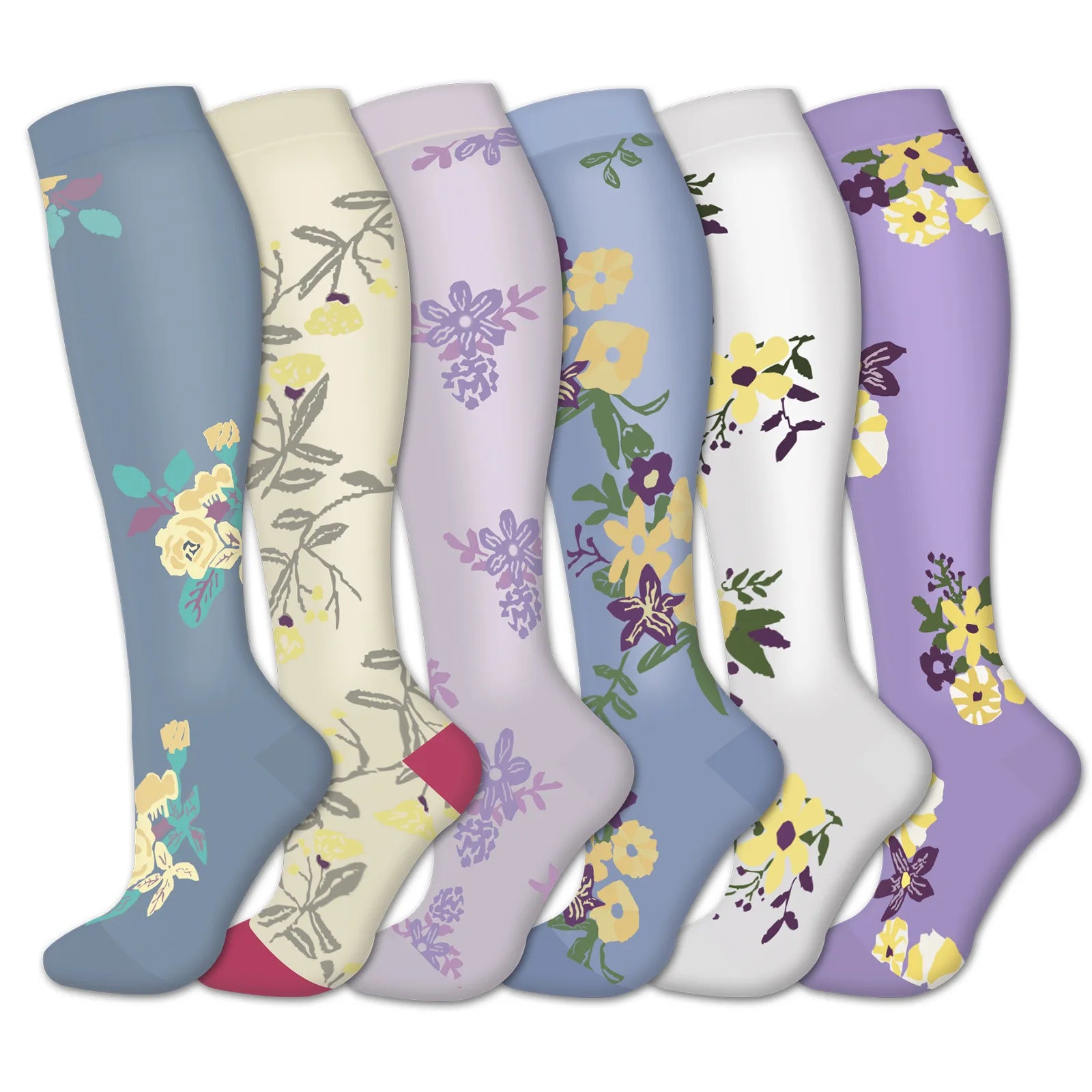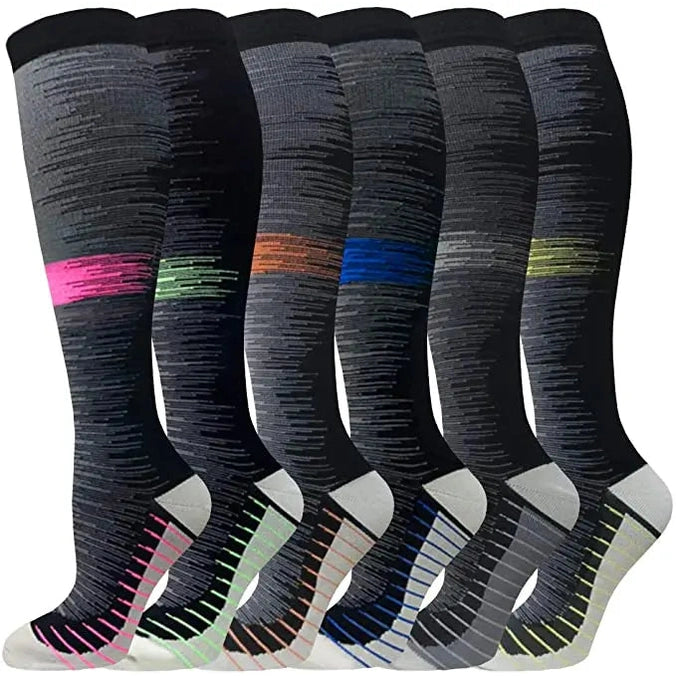 HUAYASX 6 PAIRS Compression Socks Stripes, Dots, Colorful, calf compress Socks