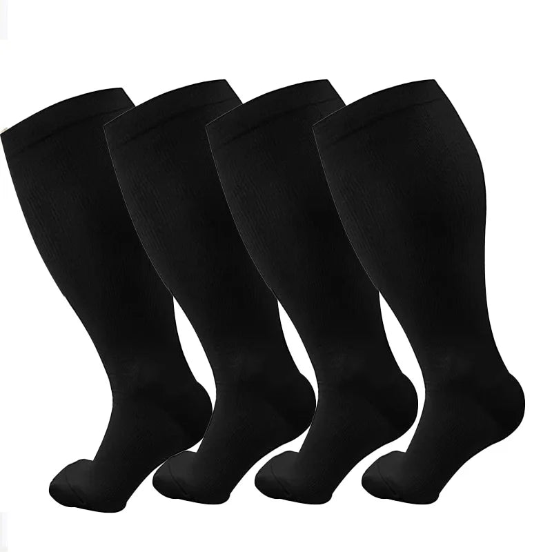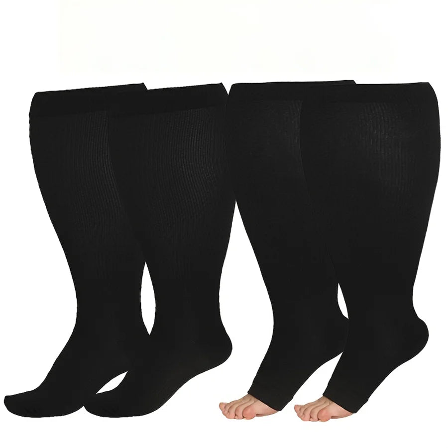 4 Pairs Plus Size Compression Socks with Open Toe/Seamless Toe Design