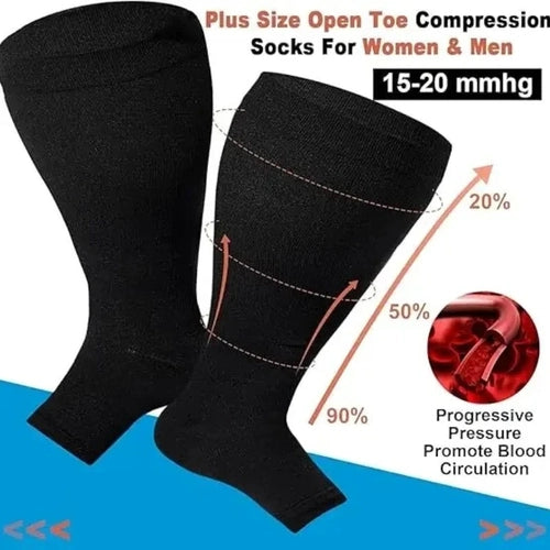 Soft colors 2XL-4XL Plus Size Open Toe Compression Socks
