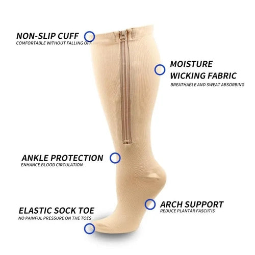 HARD TO FIND ! ! Zipper Sides Compression Socks, In sizes 2XL- 4XL