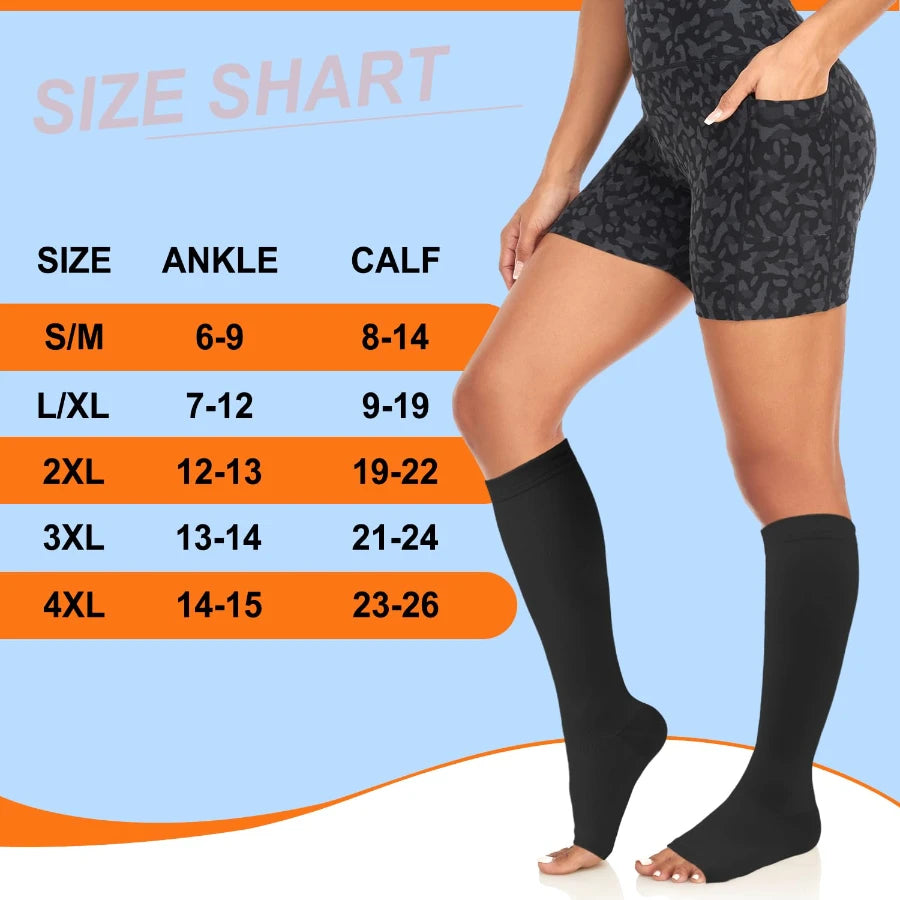 Soft colors 2XL-4XL Plus Size Open Toe Compression Socks