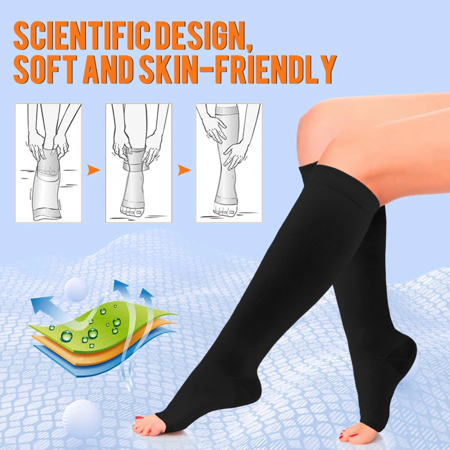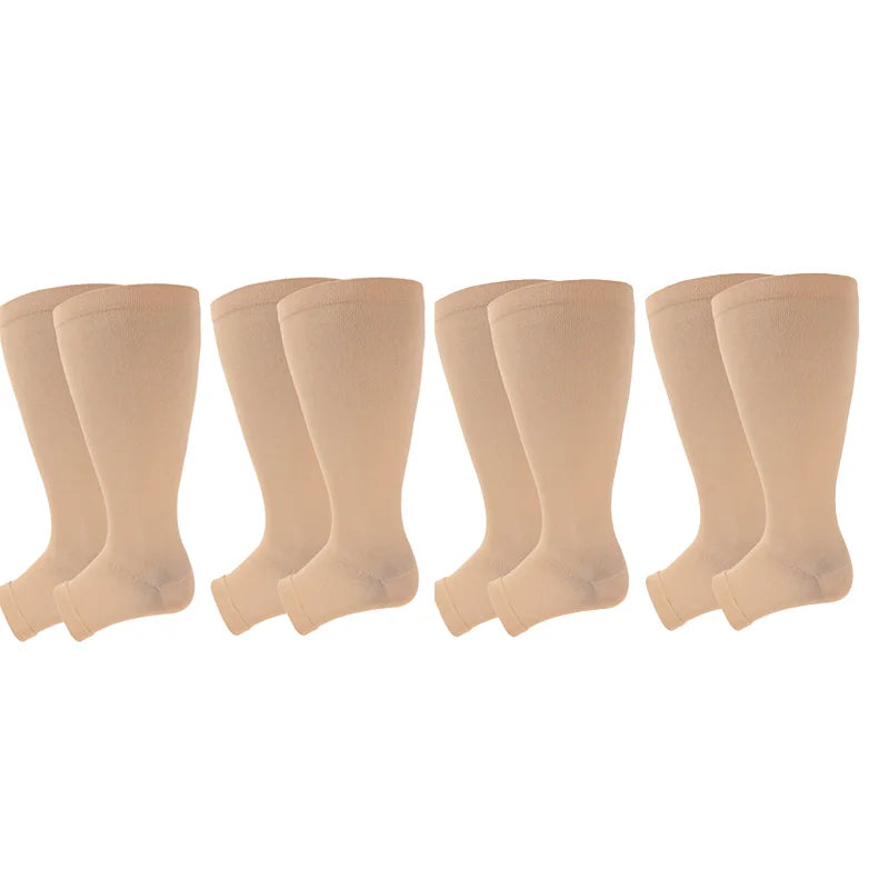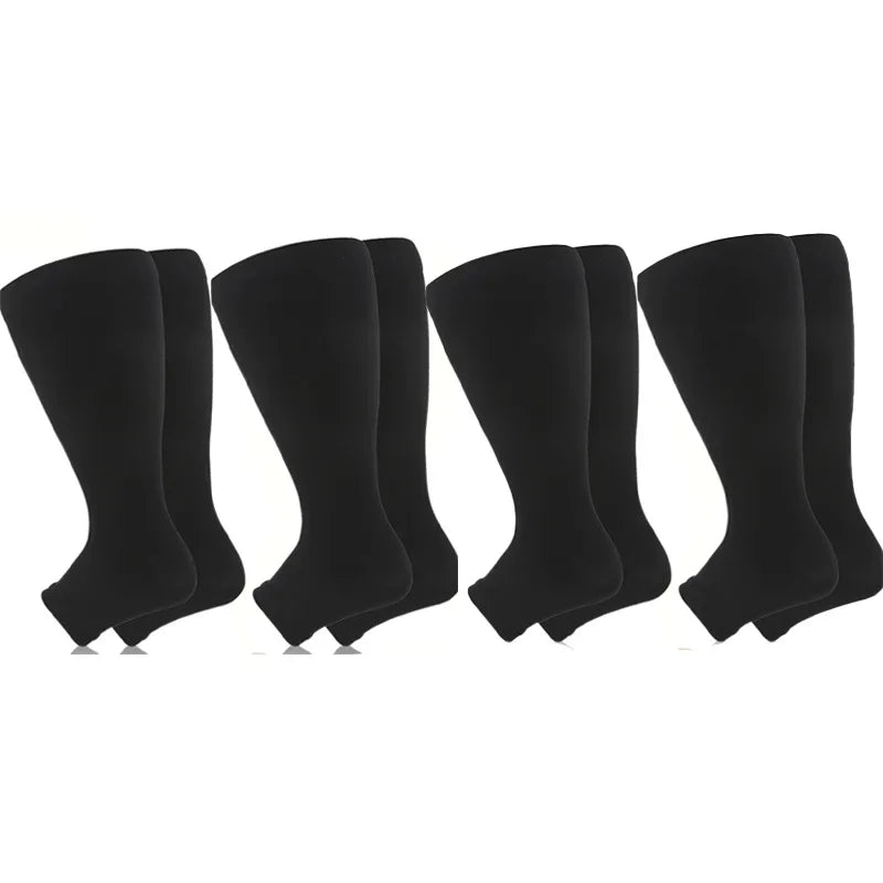 4 Pairs Plus Size Compression Socks with Open Toe/Seamless Toe Design
