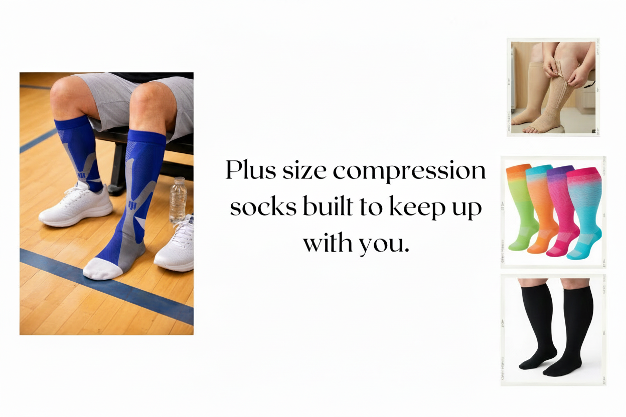 We specialize in Plus Size Socks designed for an often underserved community—people who need compression socks in larger sizes. We have sizes from 2XL to 7XL. Our custom-designed socks are made with this in mind, featuring graduated compression from your ankle to your calf with extra stretch around the top band for comfort, which allows for easy on and off. These socks are thoughtfully created for people " Who can be a little extra"