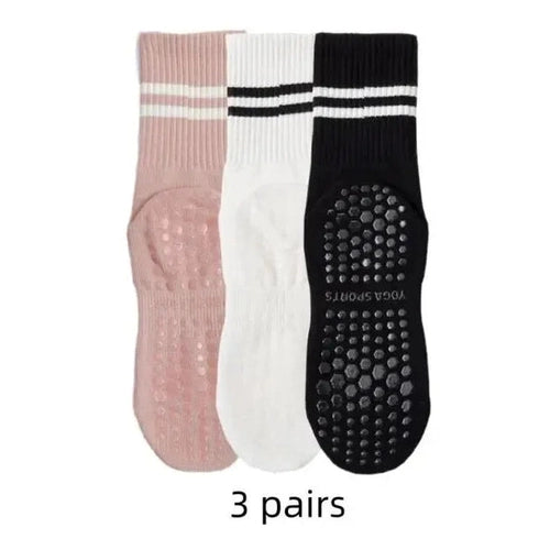 3 pairs Yoga Anti-skid Yoga Socks Grips Mid-tube Bottom Breathable Fitness, Dance, Barre, Workout, Pilates Socks