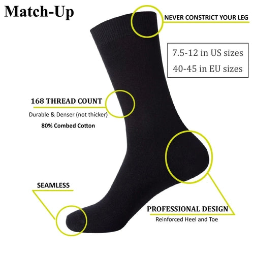 6 Pairs of Match-Up Men Bamboo Black Socks Breathable Business Dress Socks