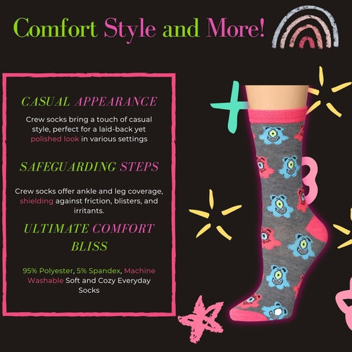 Women's 12 Pairs Colorful Patterned Crew Socks