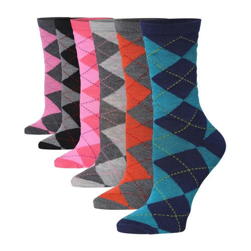 Tipi Toe Women's 6-Pairs Colorful Chromatic Diamond Argyle Patterned