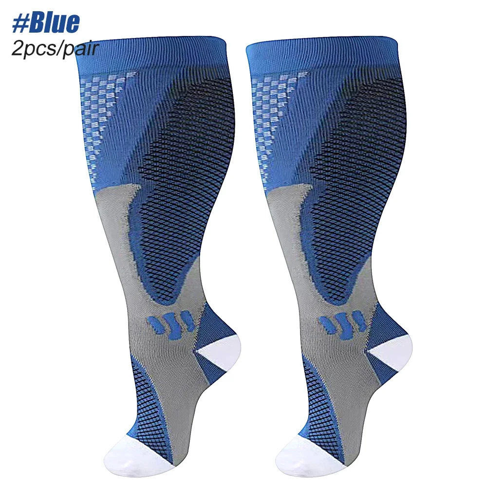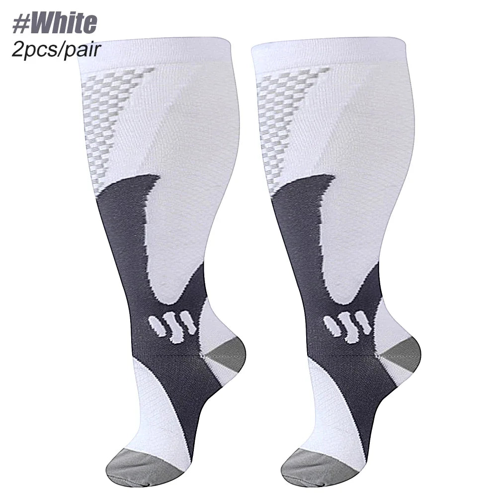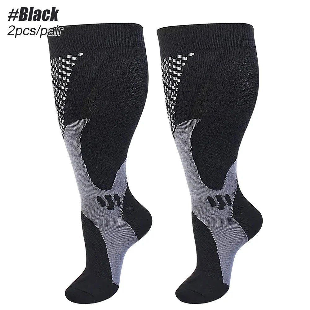 These Plus Size Compression Socks for Women and Men provide 20-30mmhg Knee High Support. Helps Improve circulation and reduce swelling and fatigue. Perfect for those with larger calves.