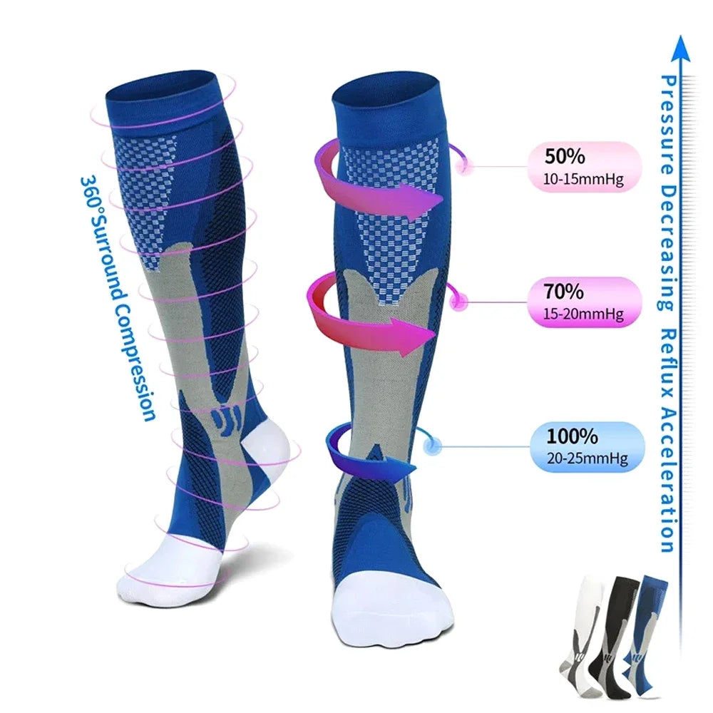 4.【COMPRESSION THERAPY INNOVATION】- Our compression socks (20-30 mmHg) are different from traditional ones. They have different pressure gradients from bottom to top to ensure smooth flow of blood vessels from the distal end to the proximal end. More improve blood circulation means more healthier legs and less pain + swelling. Our Graduated Compression Stockings support your legs, reduce fatigue, soreness, and prevent injuries, cramping, swelling and help in muscle recovery and varicose veins.